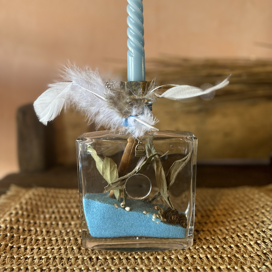 Spell Candle Kit. Craft your own spell candle holder with this all-in-one kit. It includes everything you need- materials and step by step instructions to create a magical and unique candle holder. Embrace the enchanting process and bring a touch of magic in your home.